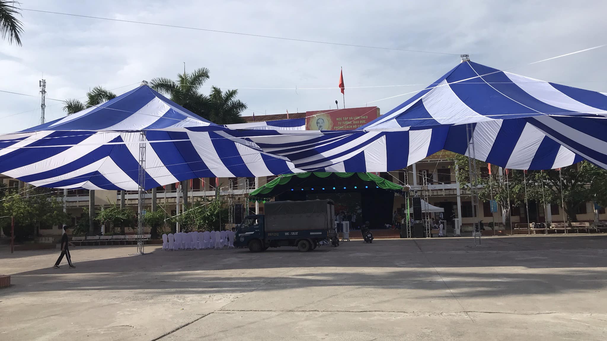 4)Báo giá cung cấp lắp đặt dù treo dây cáp sự kiện sân trường ngoài trời